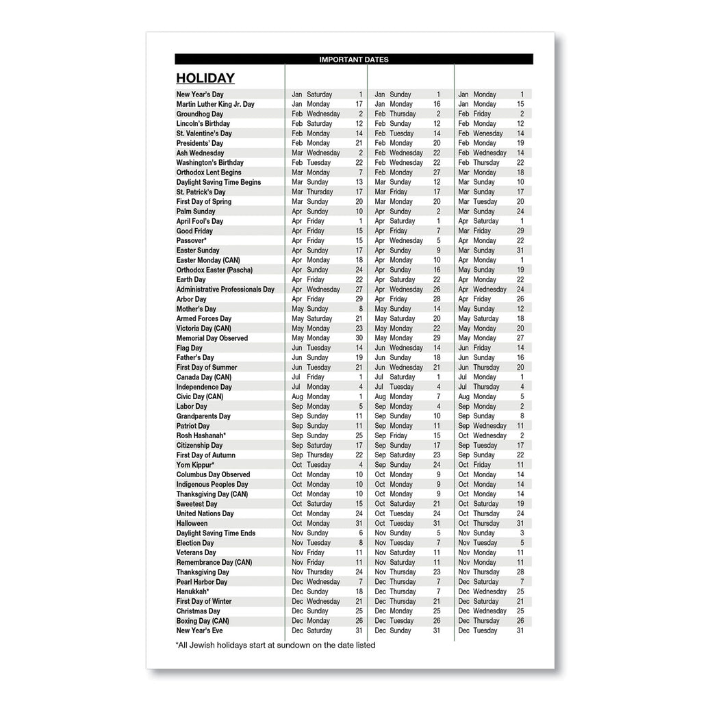 | Calendar Spread Format | One Day per Page (Mon-Fri); Two Days per Page (Sat-Sun) |