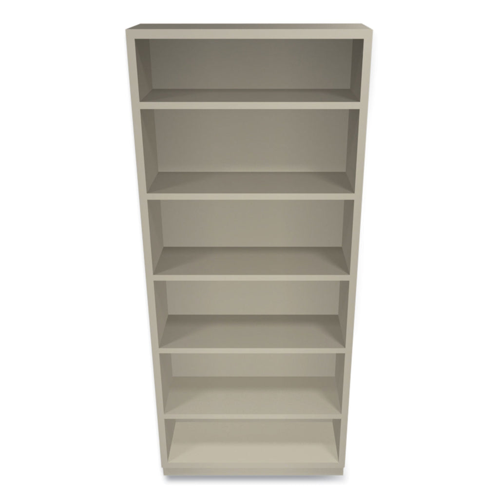 34-1/2w x 12-5/8d. Shelves adjust in 1/2" increments. Straight sides and backs allow flush alignment. Shelf count includes bottom of bookcase. Bookcases ship assembled.