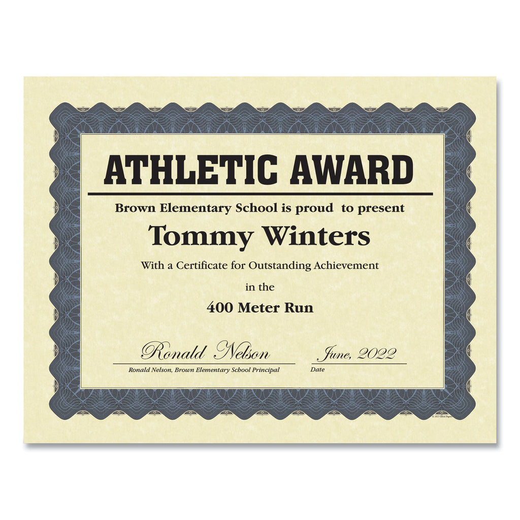 Create professional documents for graduation ceremonies, awards, and contest winners by printing custom designs on these parchment-patterned certificates. Delicate metallic border calls attention to recognized achievements. Lignin- and acid-free sheets are compatible with both inkjet and laser printers.