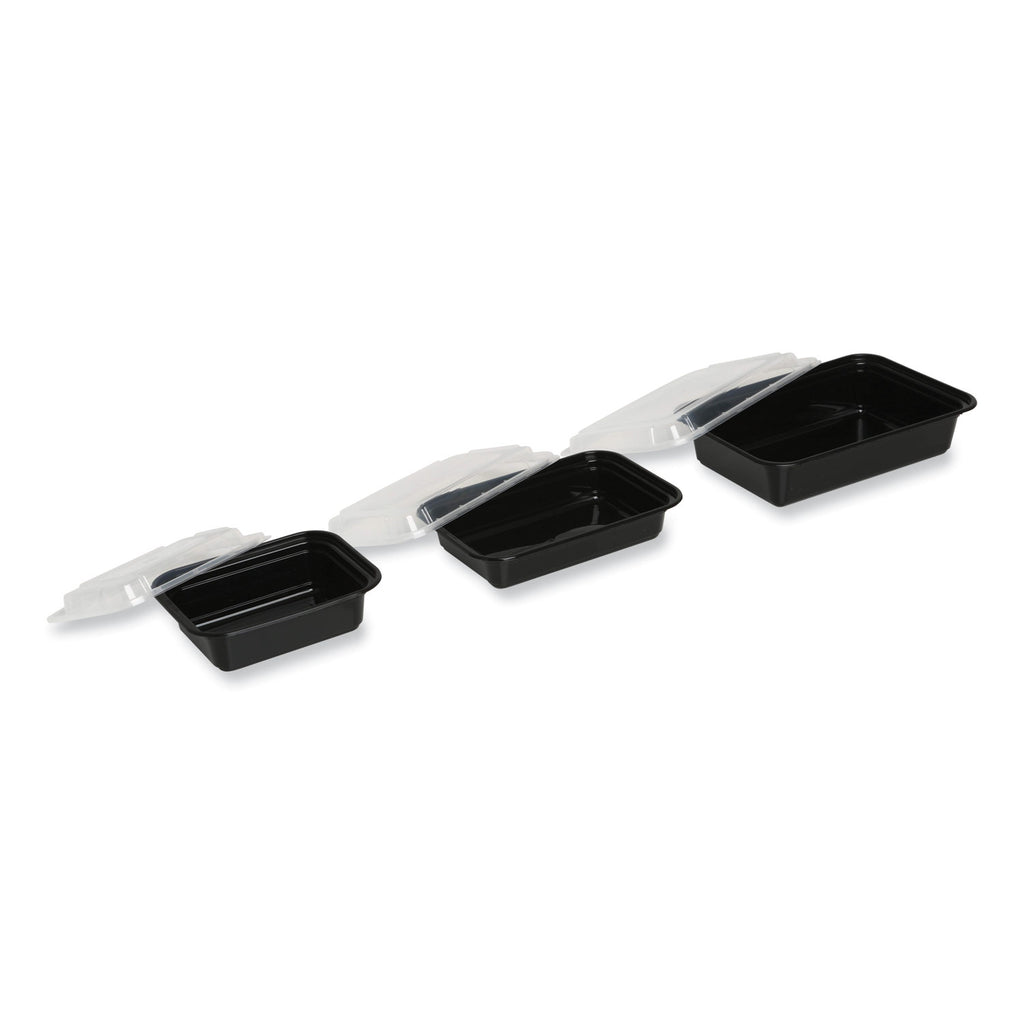 Black base with a clear lid, these food containers are the perfect option for pick-up, delivery or take out. Lid is separate piece. Items are microwave safe.
