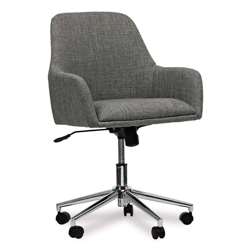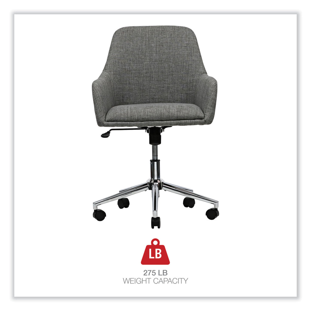 Update your home or office space with this stylish mid-century modern task chair. Rounded design with fabric seat and back provides a clean and contemporary look. Lever adjustable seat height, tilt tension, and tilt lock help you find the right position for working or lounging. Chrome base with five casters provide mobility. Smooth, rounded design coordinates with most home or office décor. Some assembly required.