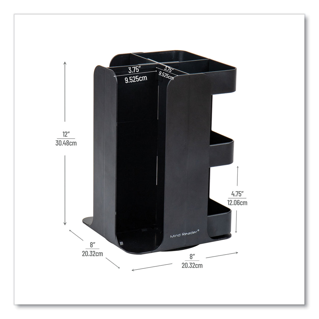 - This vertical cup and condiment tower spins a full 360 degrees for easy access.