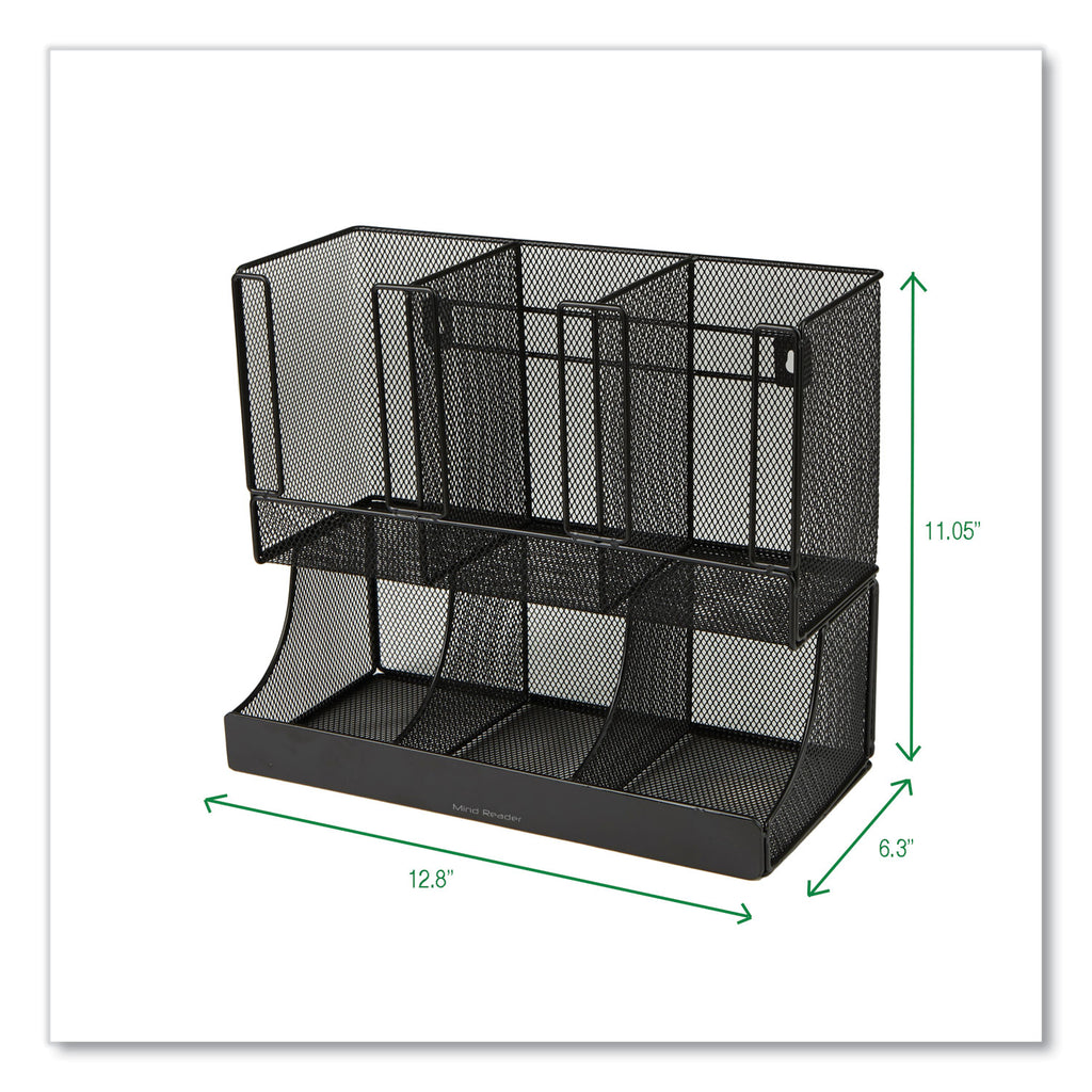 Convenient coffee and tea organizer. Six different compartments allow you to store coffee and tea cups and lids and their related condiments, such as sugar, sweeteners, and creamers. Save space in your office breakroom, hotel coffee bar, or your kitchen countertop with this organizer—no more searching in drawers for items or loose things on the countertop. Beyond using this for coffee, tea, and condiments at home, it also makes a great beverage station in bed and breakfasts, hotels, and conference centers. Alternatively, this can also be used for condiment packets, such as lemon, honey, ketchup, or mustard. This countertop organizer is also a great idea for parties or backyard barbecues. With a light weight of 3.34 lbs, this organizer is conveniently portable, and you can easily move the stand from place to place for different purposes and needs. You can place the organizer right on the table or countertop, or to save even more space, it can be mounted on the wall. This makes a great gift at the office, for someone working in hospitality, or as a holiday gift for the avid coffee and tea drinker.