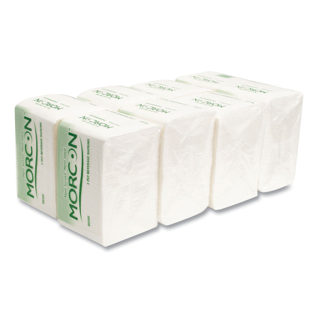 This reliable food service beverage napkin can be used as an alternative to small plates at a bar, at a catered event, café or casual dining venue. These napkins are made entirely from recycled material and meet EPA guidelines for minimum post-consumer content. This two-ply napkin is economical. Protect countertops or tables from watermarks with this perfectly sized commercial beverage napkin.