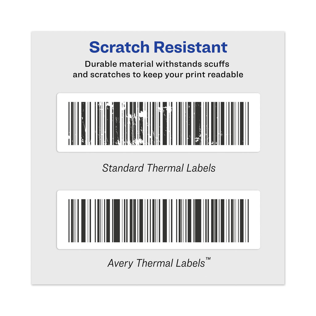 - Durable thermal labels are scratch-resistant, smudge-free and resist water, dirt, dust and grease.