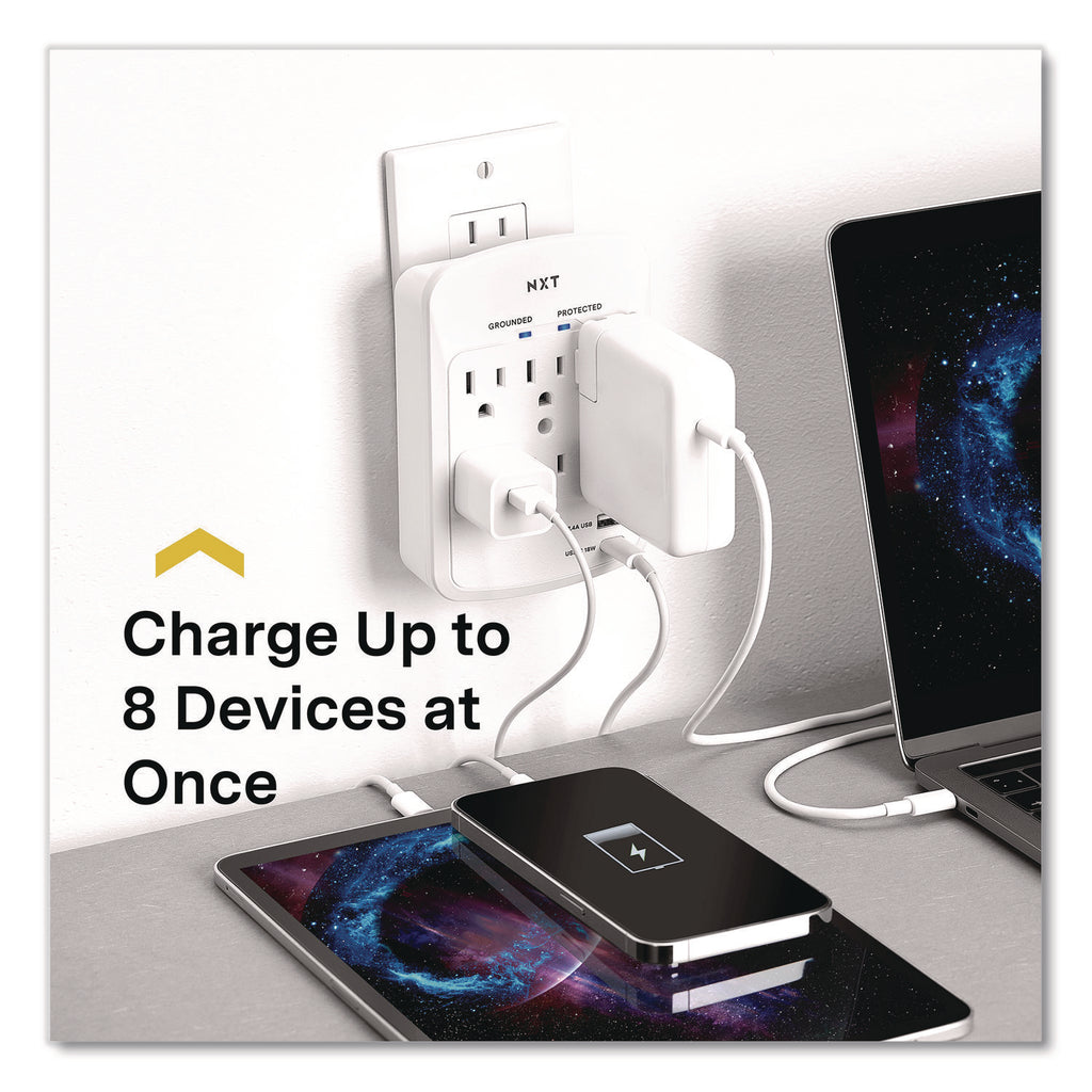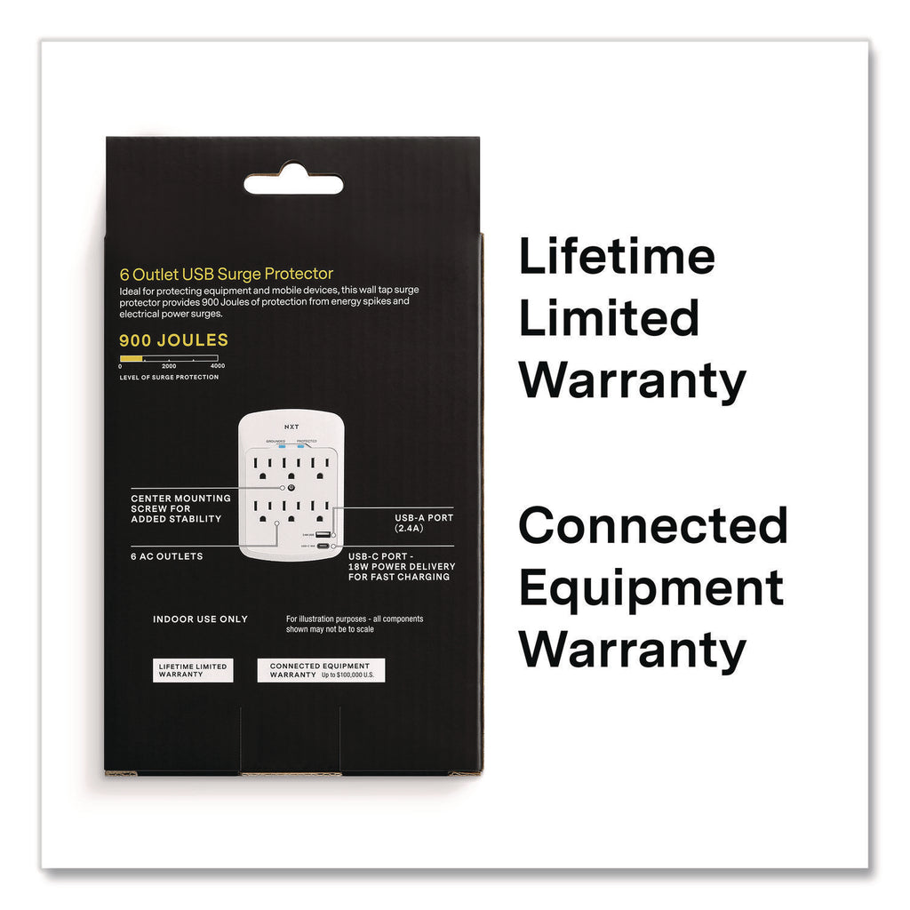 - Surge protector adapter features six grounded AC outlets, one USB Type-A port, and one USB Type-C port for convenient powering of multiple devices such as phones, tablets, and monitors all at once.