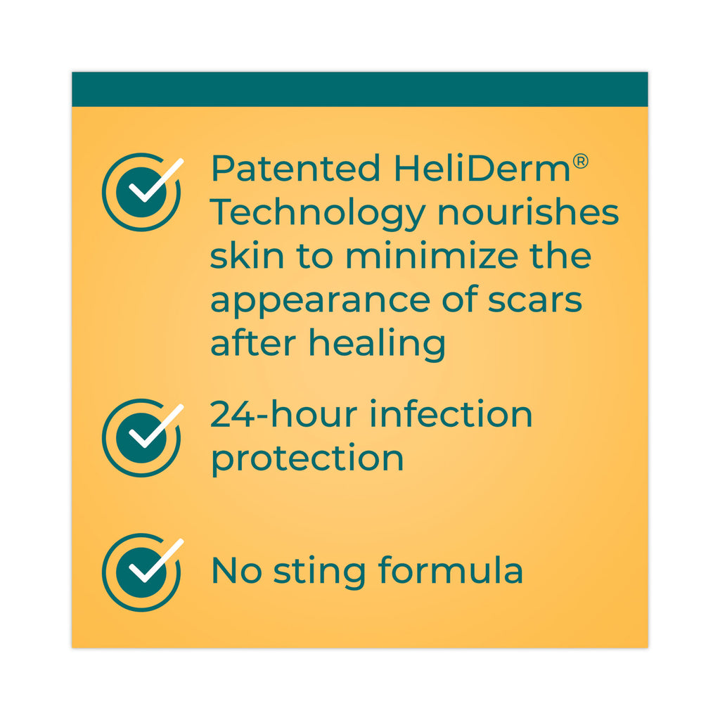First aid antibiotic ointment provides long-lasting infection protection for minor cuts, scrapes and burns. Made with HELIDERM™ Technology to nourish skin and help minimize the appearance of scars. Provides 24-hour infection protection.