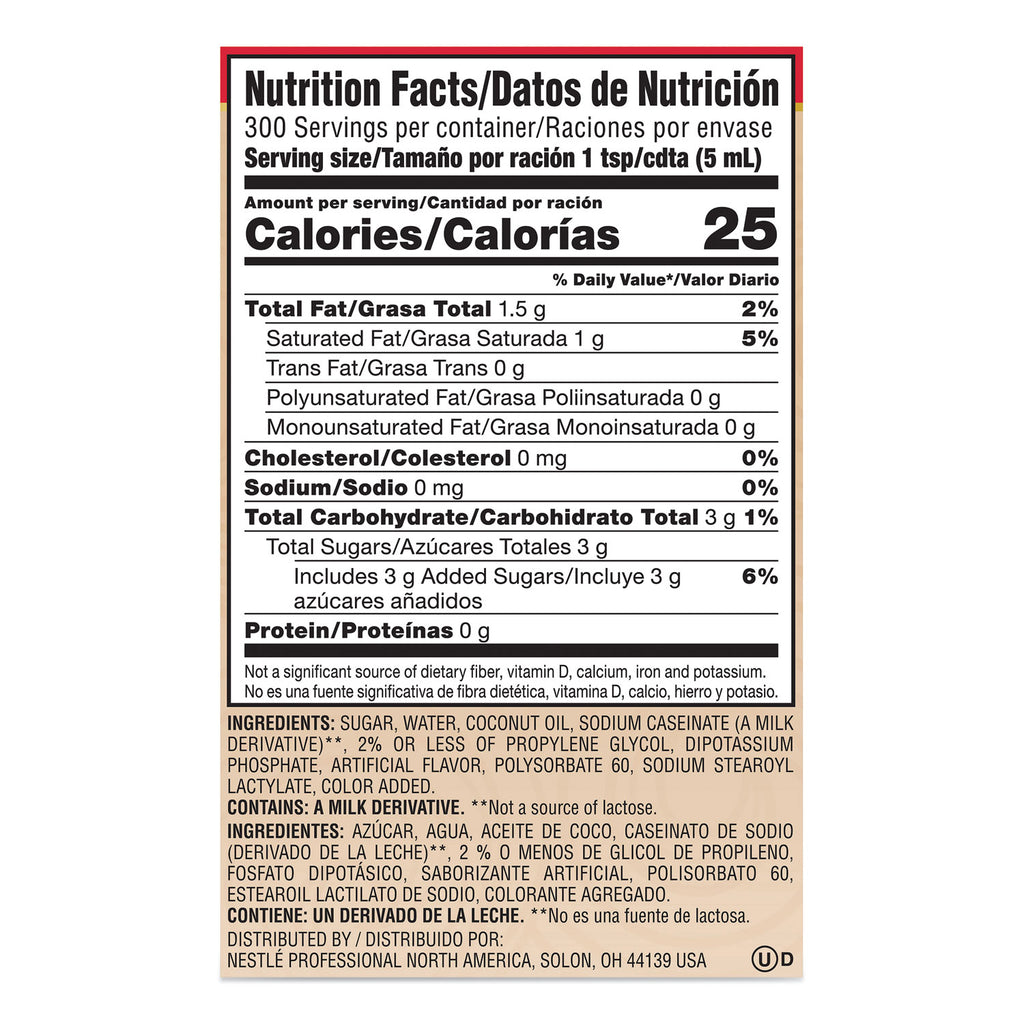 Non-dairy coffee creamer is now available in a convenient, easy-to-use pump dispenser that eliminates mess. One pump gives you the same amount of delicious Coffee-mate® Liquid Coffee Creamer as one small tub. Pump is non-removable once installed for food safety. 300 liquid creamer servings per bottle. Lactose-free, Kosher dairy, cholesterol-free and shelf-stable.