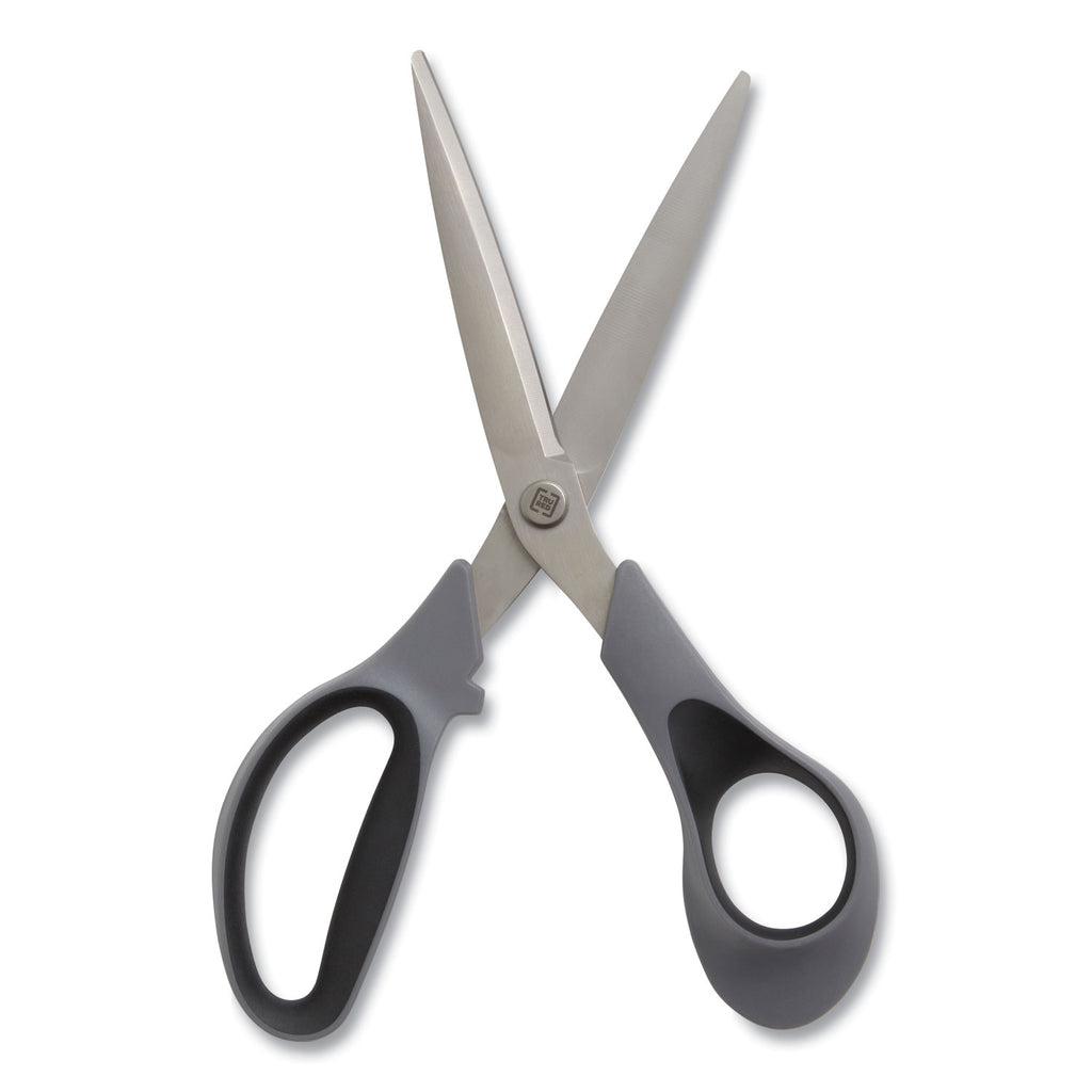 Titanium-coated steel for strength and durability, these scissors are ideal even when working with double-sided tape and self-adhesive sheets. Innovative 3-D curved blades provide smooth, precise performance. Ergonomic, soft-touch handles.