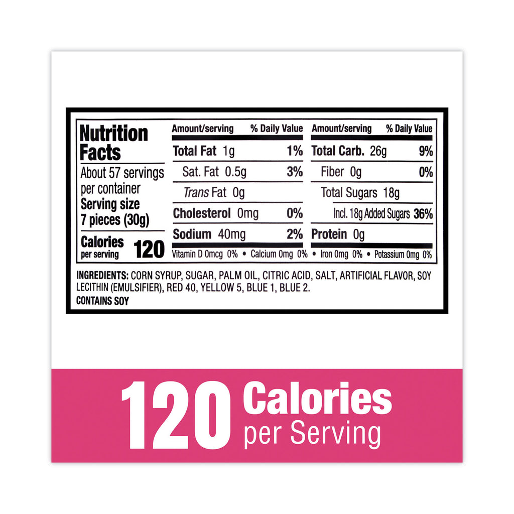 Each individually wrapped chewy candy is bursting with flavor that lasts! In this assorted bulk tub, choose from banana, apple, cherry, grape, and strawberry squares. With 365 individually wrapped pieces, there is enough to fill the pińata at your kids birthday party or the colorful candy buffet at your celebration. Enjoy the long lasting chew of this candy.