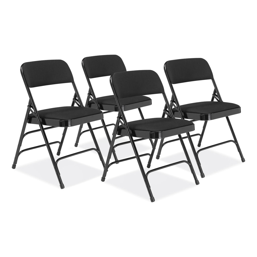 Fabric padded folding chairs add a professional and elegant look to any environment. The seats are covered with a stain resistant fabric on a high quality comfortable foam. Color coordinated floor glides prevent floor damage.