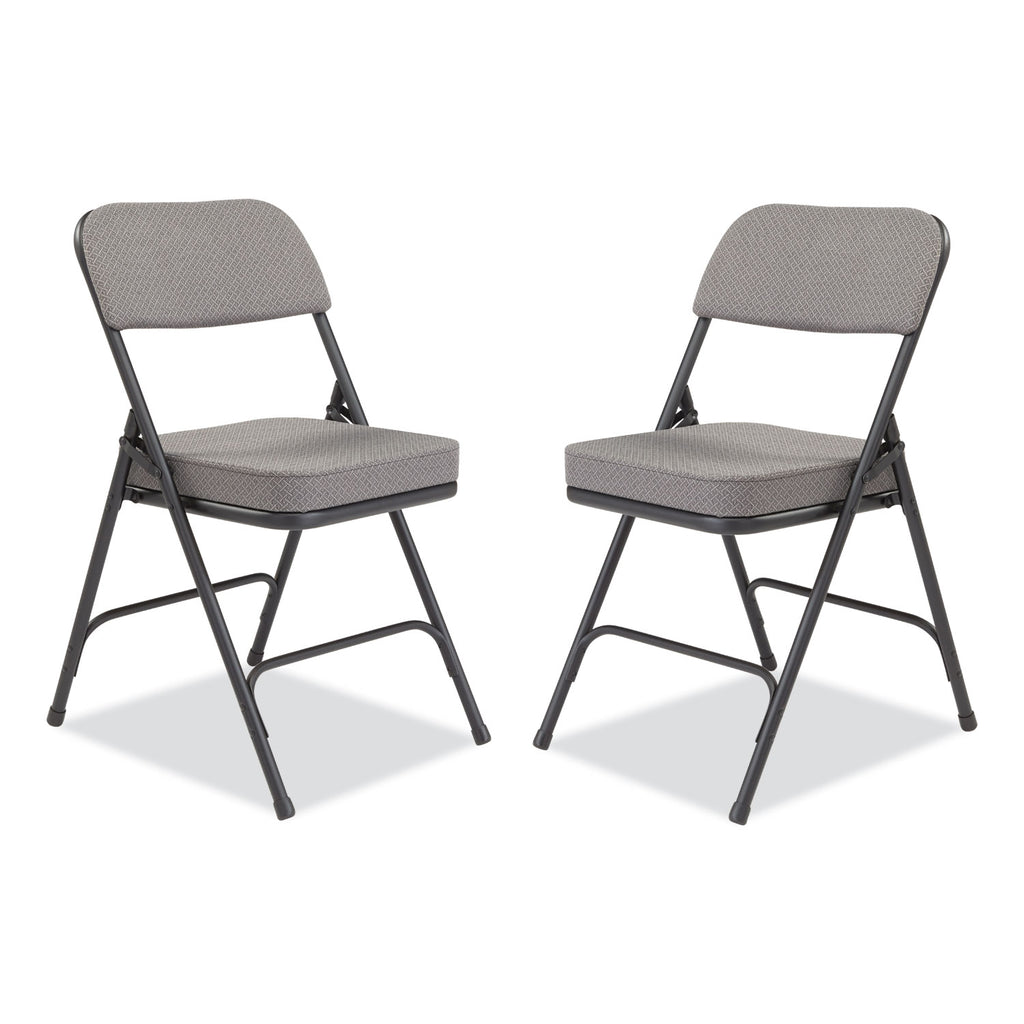 Fabric padded double hinge folding chairs feature a super-soft 2 inch thick cushion providing comfort and relaxation. These chairs are a perfect solution for dining, meetings and banquets. Matching chair glides prevent floor damage.