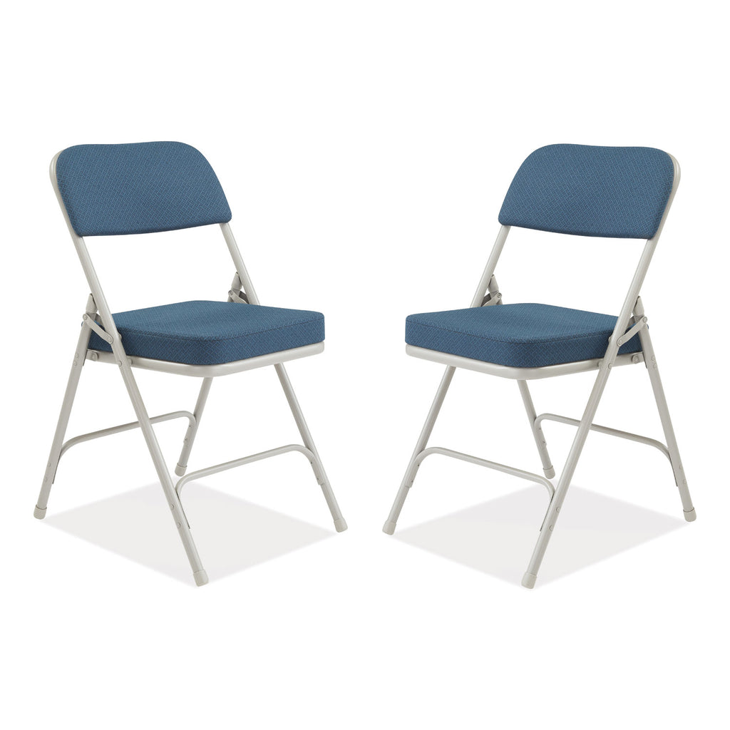 Fabric padded double hinge folding chairs feature a super-soft 2 inch thick cushion providing comfort and relaxation. These chairs are a perfect solution for dining, meetings and banquets. Matching chair glides prevent floor damage.