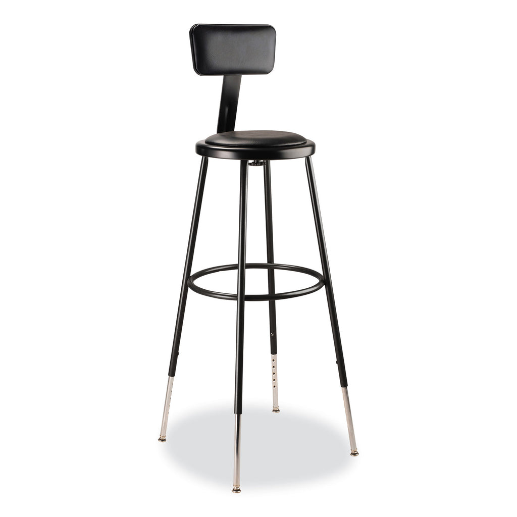 NPS® 6400 Series Height Adjustable Heavy Duty Vinyl Padded Stool with Backrest, Supports 300 lb, 32" to 39" Seat Height, Black