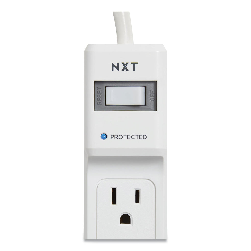 Protect delicate electronics and data from power surges. Integrated circuit breaker automatically switches off in the event of an overload that exceeds the surge protector's ability to suppress the signal. Space-saving right-angle plug.