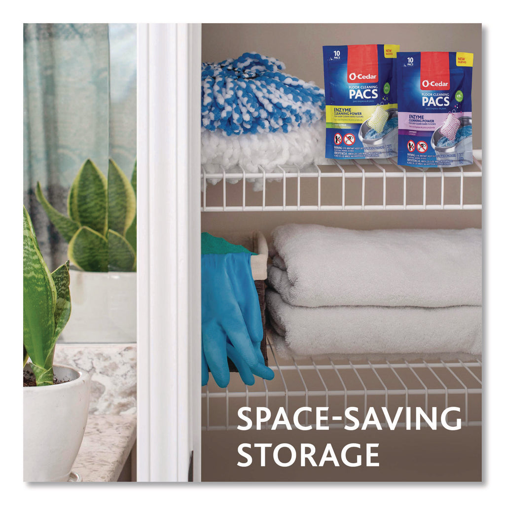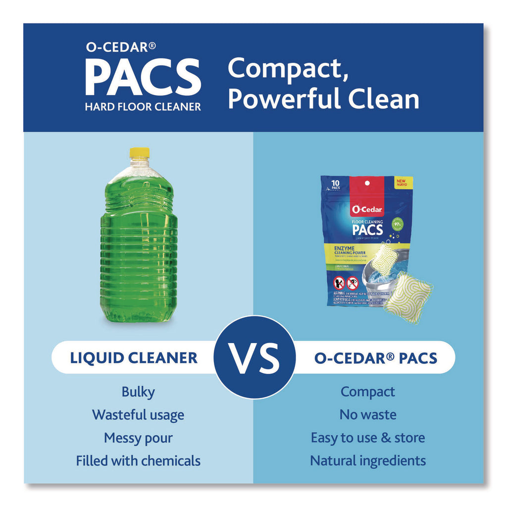 Take the guesswork out of cleaning your floors with the convenient and perfectly portioned O-Cedar® PACS. Mixed with 1.6 gallons of water, each PAC has the deep cleaning power to clean every hard-surface floor in your home, including hardwood, tile, vinyl and laminate. Simply drop one O-Cedar® PAC into your EasyWring or RinseClean bucket, and you'll see the bubbles fizz. Then, it's time to mop! Naturally-derived enzymes dissolve stubborn dirt and grease for a streak-free clean, without any harsh chemicals.