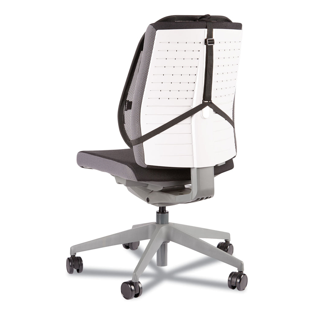 Reduces tension by supporting the lumbar curve of your lower back. Gently conforms to your body's contours. Mesh fabric allows airflow for personal comfort. Easily attaches to any chair.