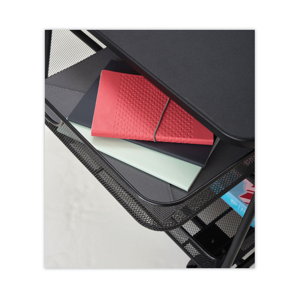 - Mobile cart on four swivel casters with two locking, slides easily under desk or work surface when not in use to save space.
