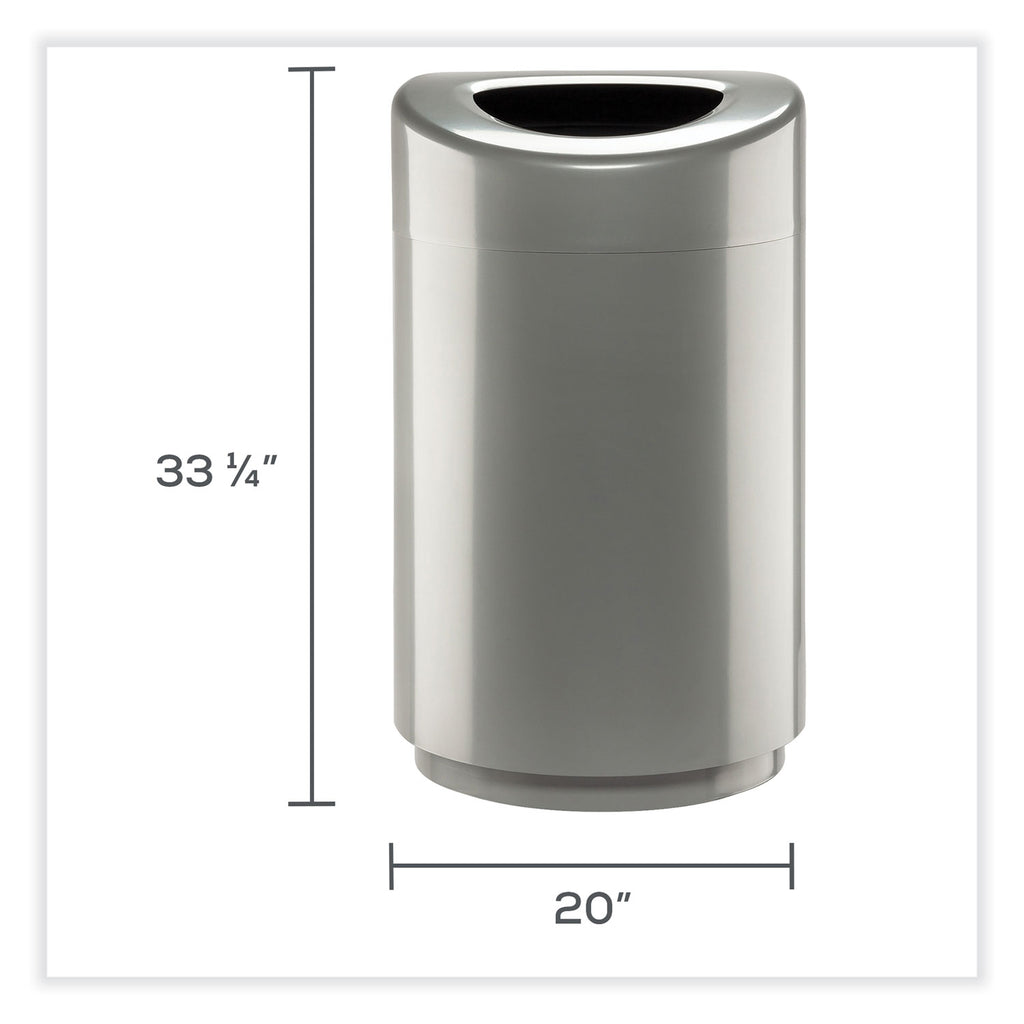 Curved design and large capacity are perfect for high traffic and first impression areas. Powder coat steel shell is strong and durable. Protective plastic liner (included) simplifies bag removal while making periodic cleaning/deodorizing tasks easy. Lid easily pulls off to hide bag.