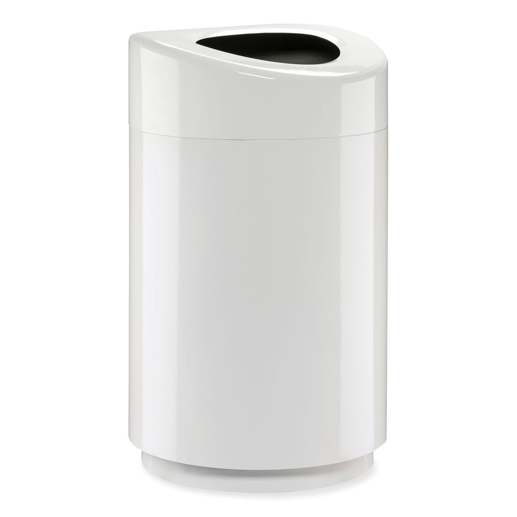 Curved design and large capacity are perfect for high traffic and first impression areas. Powder coat steel shell is strong and durable. Protective plastic liner (included) simplifies bag removal while making periodic cleaning/deodorizing tasks easy. Lid easily pulls off to hide bag.