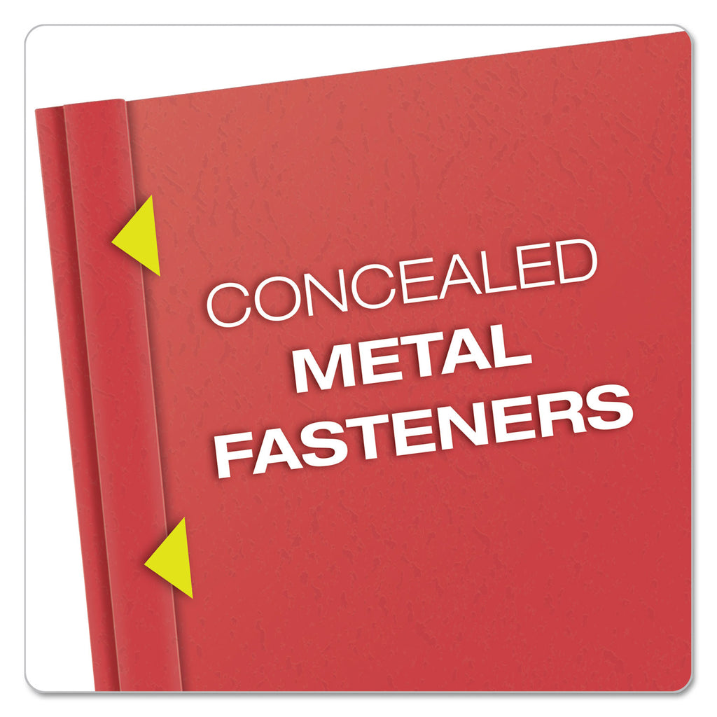 Clear view draws the reader in. First page can include report name and customized graphics. Standard-grade leatherette embossed back cover.