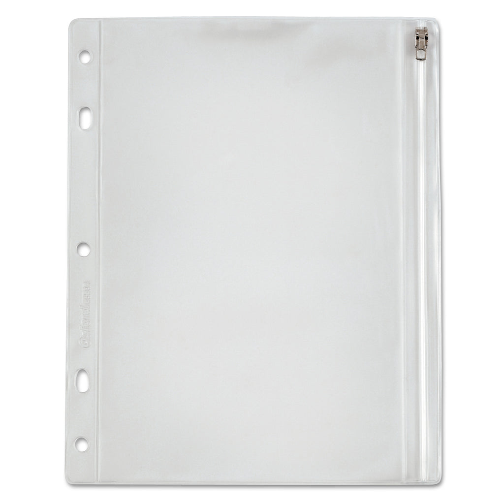 Pocket expands 1/2" and keeps loose supplies organized. Multi-hole punched for two-, three- and five-ring binders. Snag-proof zipper.