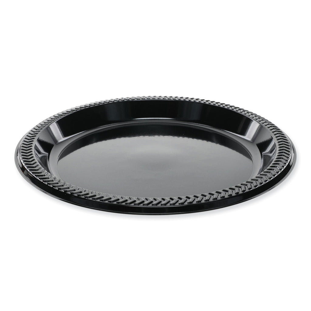 Premium line high impact polystyrene tableware. Offers exceptional strength and performance with a high end appearance. Smooth rigid plastic with an attractive, china-like luster. Superior cut resistance. Unique upscale pattern rim de-nesting feature allows for easy separation one at a time.