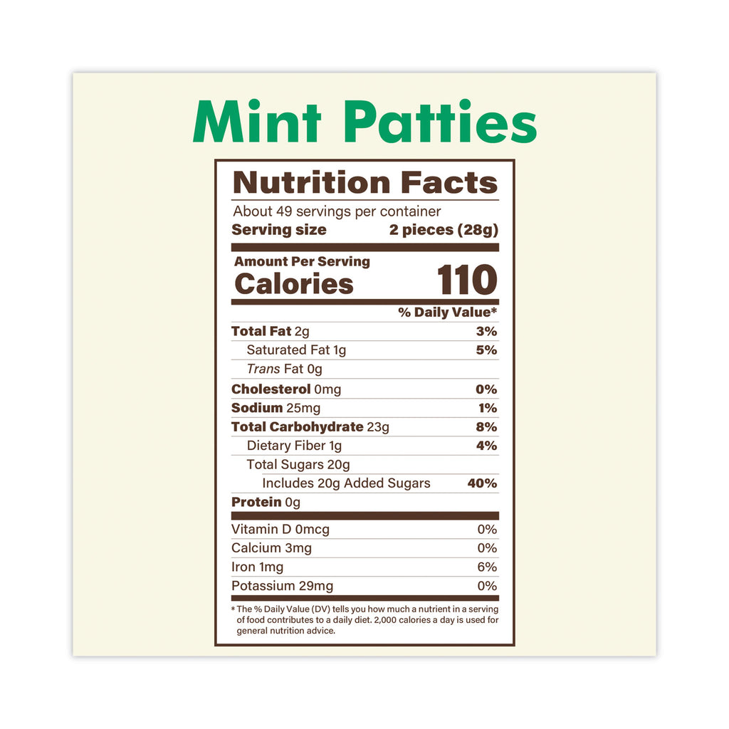 These mint patties have perfected a classic combination of flavors sure to entice your tastebuds. First, enjoy the rich, robust flavor of dark chocolate. Then, take a bite, and cool your mouth with the refreshing creamy peppermint center. With individually wrapped mint patties, this treat is perfect for keeping to yourself, or for filling a candy buffet. Indulge your senses guilt-free with these mint patties, always low in fat and gluten-free.