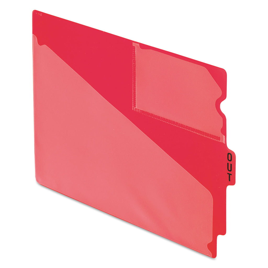 - Bright color and pre-printed "OUT" tabs make it easy to see which files are out.