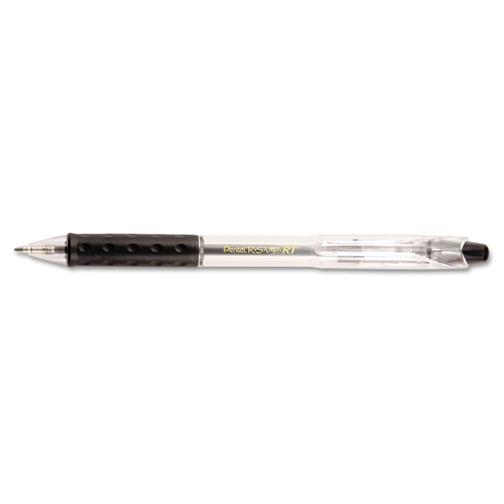 Pentel® R.s.v.p. Rt Ballpoint Pen, Retractable, Medium 1 Mm, Black Ink, Clear Barrel, Dozen
