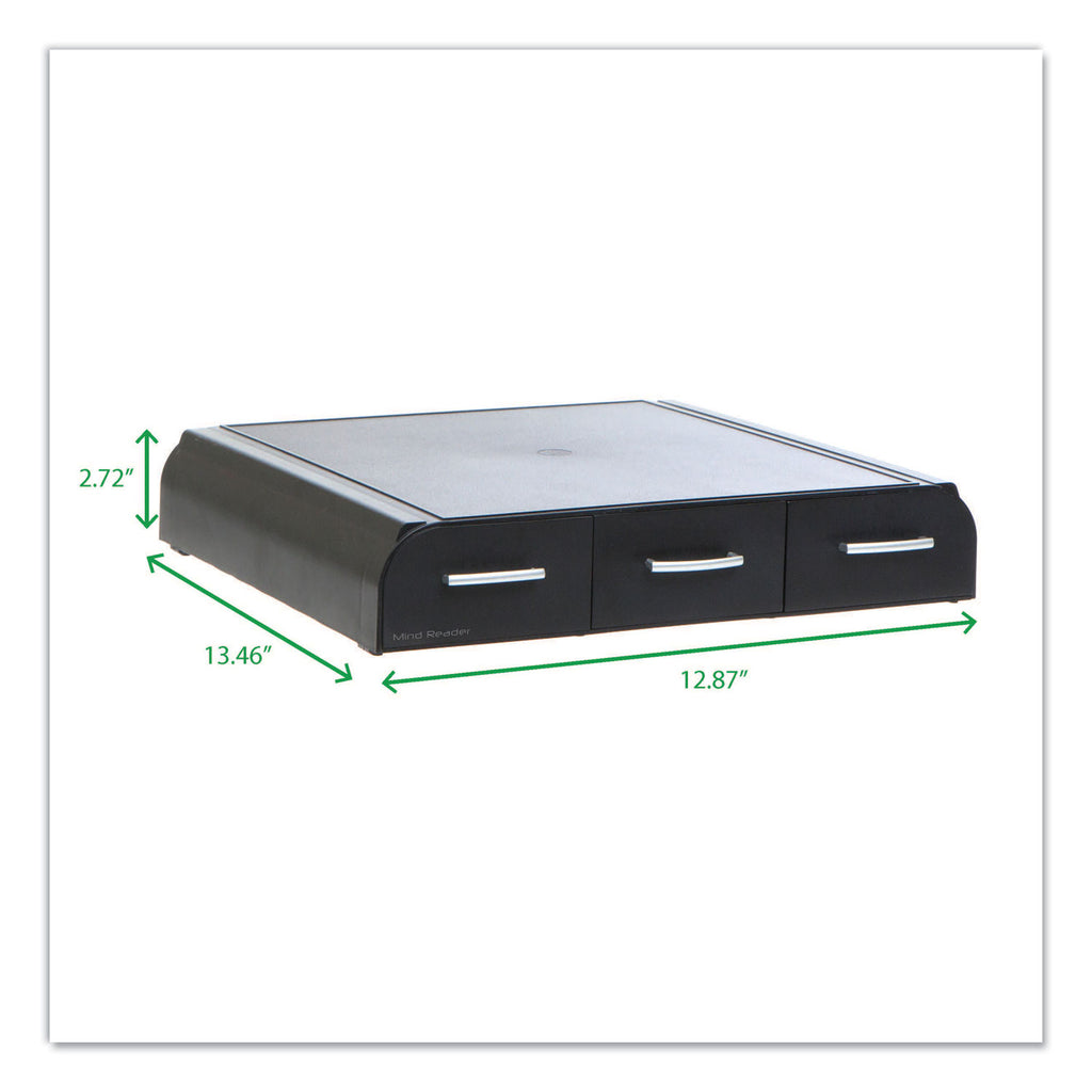 Featuring a cool, modern design, this monitor stand raises up your monitor for maximum comfort, reducing eye and neck strain, while organizing all of your desk accessories. Ten compartments allow you to store and organize all of your desk accessories. Open space underneath accommodates a keyboard or notepads.