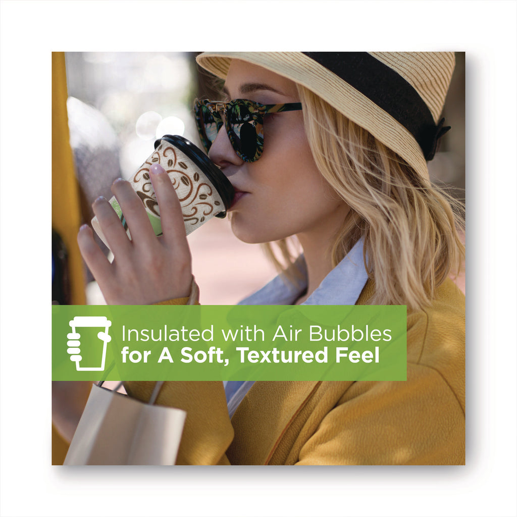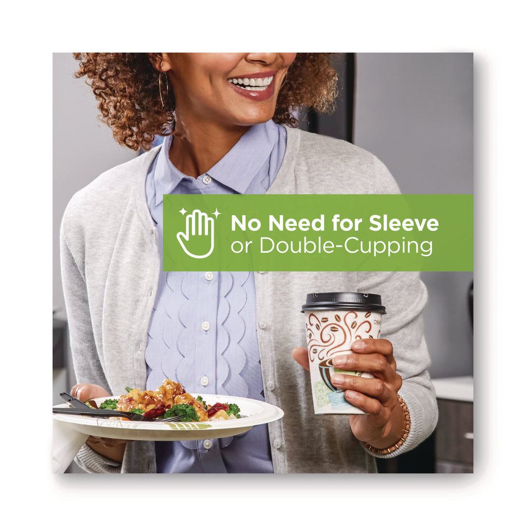 Patented paper process provides excellent insulation and helps reduce the need for costly double-cupping and beverage sleeves. Cup design provides a comfortable grip. Contains no polystyrene foam.