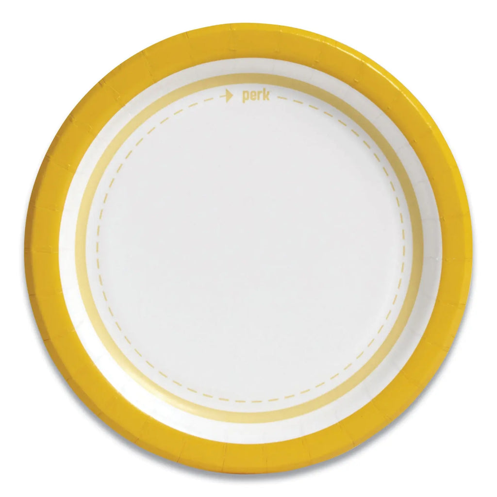 Uniquely vibrant, fun and perky design. Medium-weight paper dining option. Greasy foods won't soak through the plate. Allows easy clean up at the end of lunch. Microwave-safe for limited reheating.