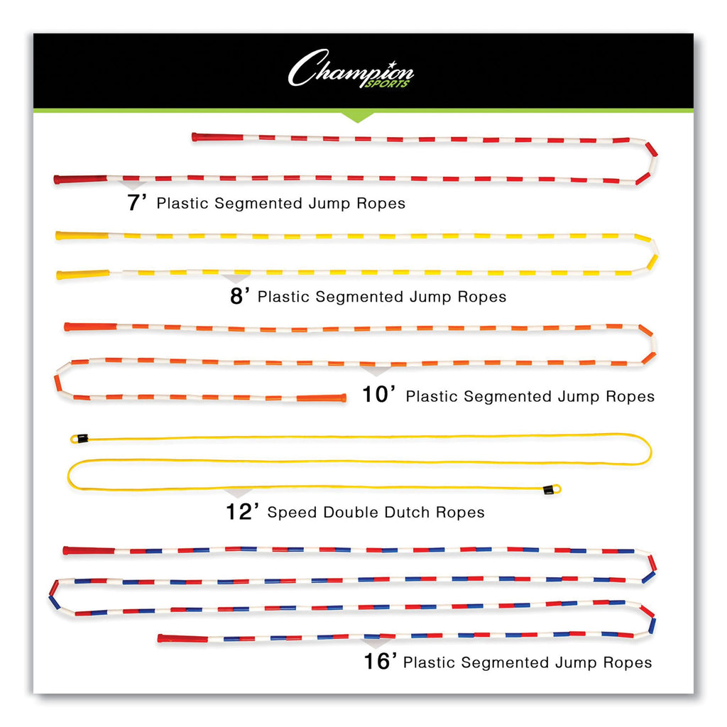 - Set includes a volleyball, two 8 1/2" diameter playground balls, two soccer balls, two basketballs, two 10' jump ropes, two 12' jump ropes, two 16' segmented jump ropes, four 7' segmented jump ropes and four 8' segmented jump ropes.