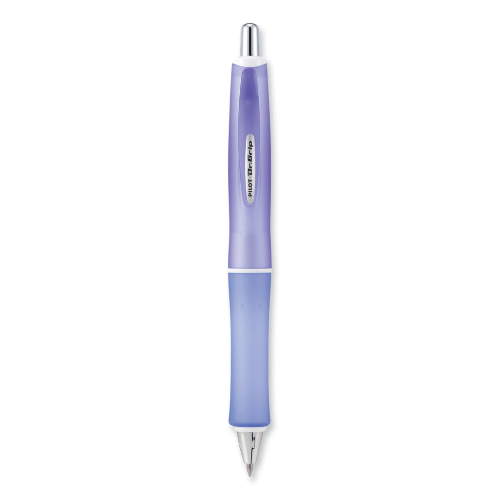 Indulge yourself with the smooth comfort of this delightfully designed Dr. Grip Frosted advanced ink pen. Light and airy pastel barrel colors. All come with black ink and the most popular medium point size. The ergonomic cushioned grip alleviates writing stress while the advanced ink glides on the page.