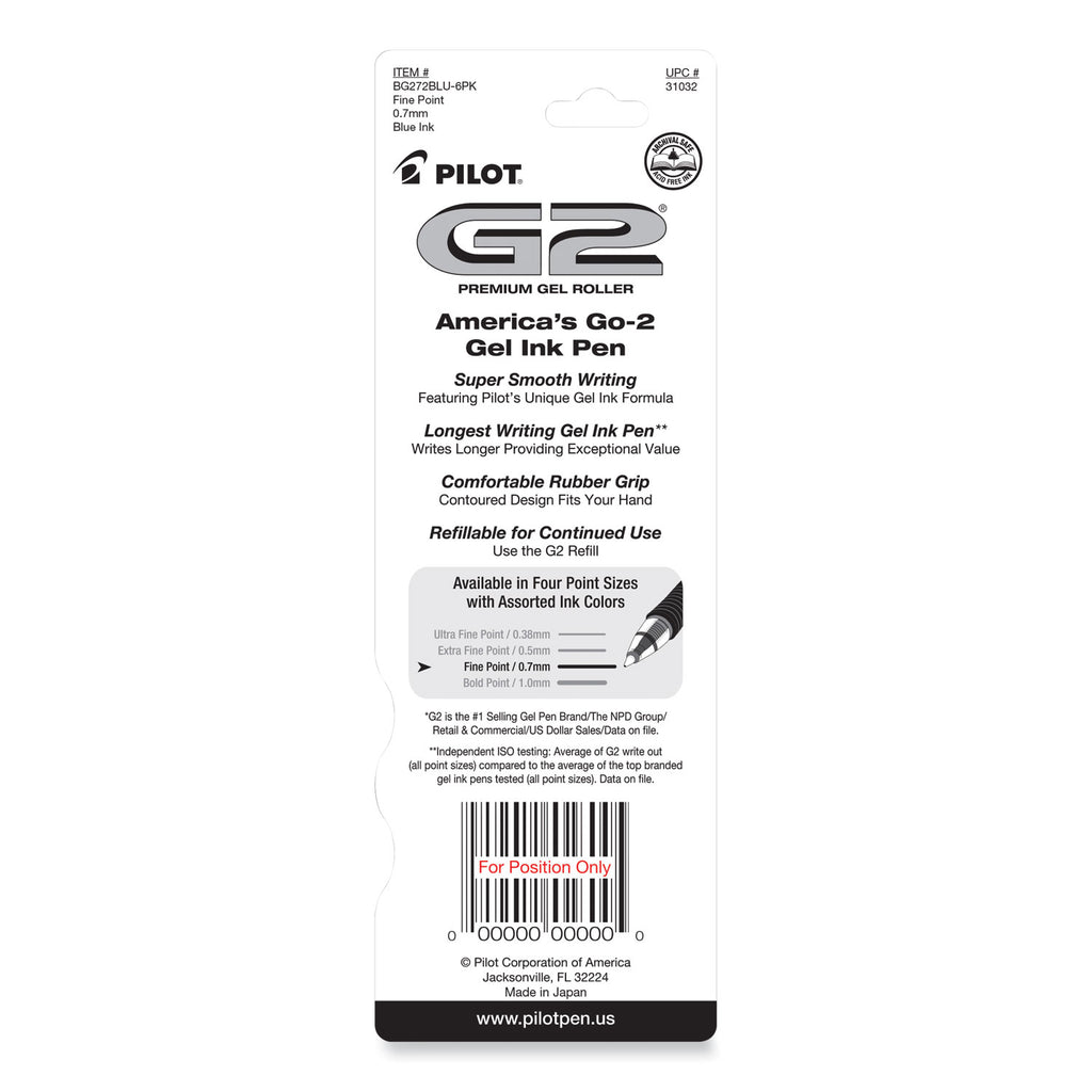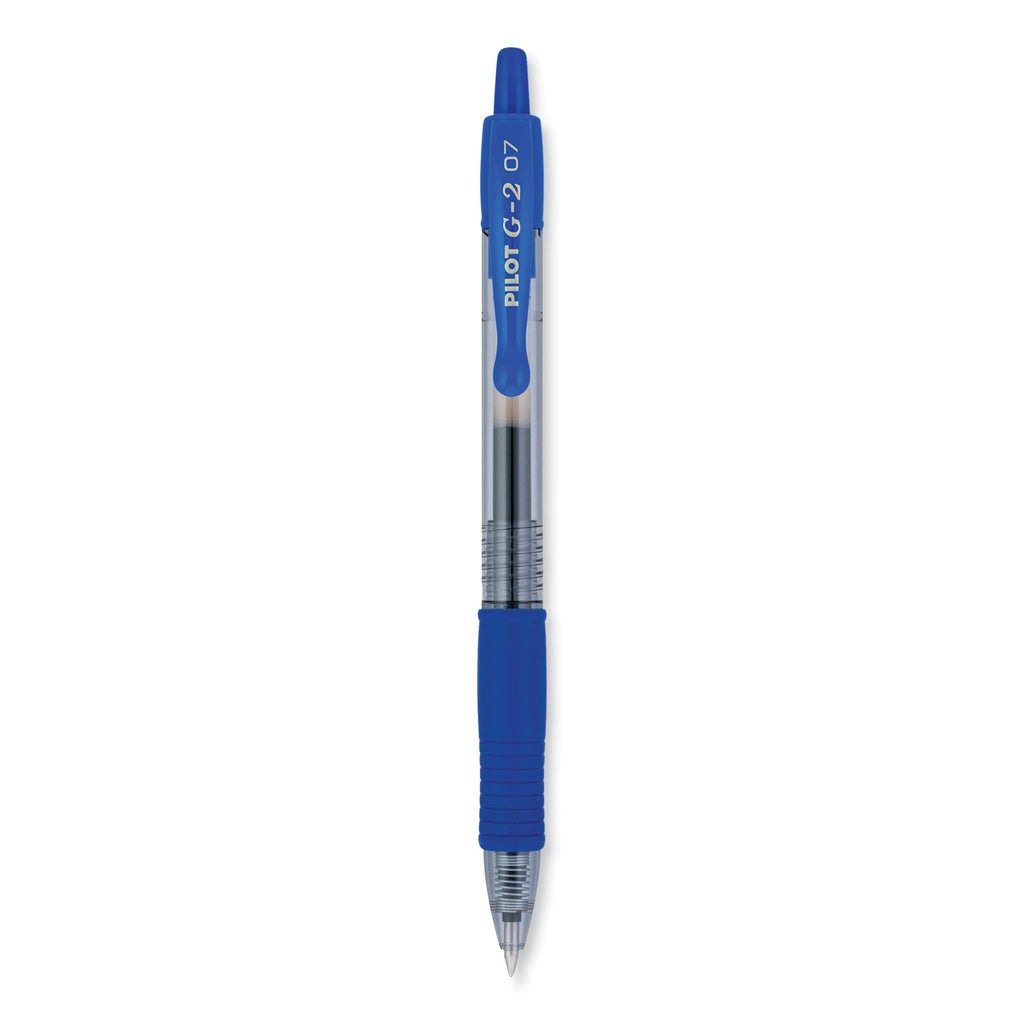 Pilot® G2 Premium Gel Pen, Retractable, Fine 0.7 mm, Blue Ink, Smoke/Blue Barrel, 2/Pack
