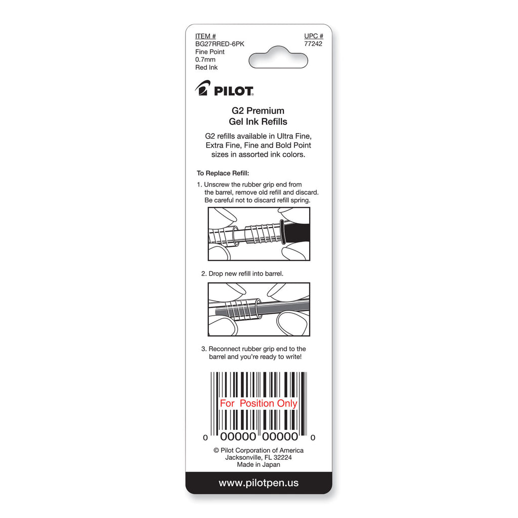 | Refill For Series | Pilot® B2P Gel Pens, Dr Grip® Gel Pens, Dr Grip® LTD Gel Pens, G2 Fashion Gel Pens, G2 Gel Pens, G2 Limited Gel Pens, G2 Pro Gel Pens, G6 Gel Pens, MR Metropolitan Gel Pens, Precise Gel BeGreen® Pens, Q7 Gel Pens |
