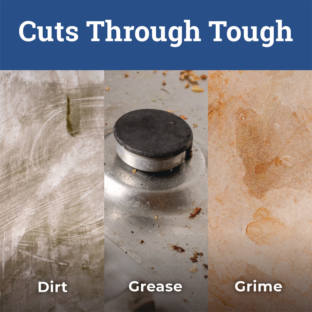 - Cuts through tough grease, grime, dirt and soap scum while leaving behind a clean scent for your toughest messes.