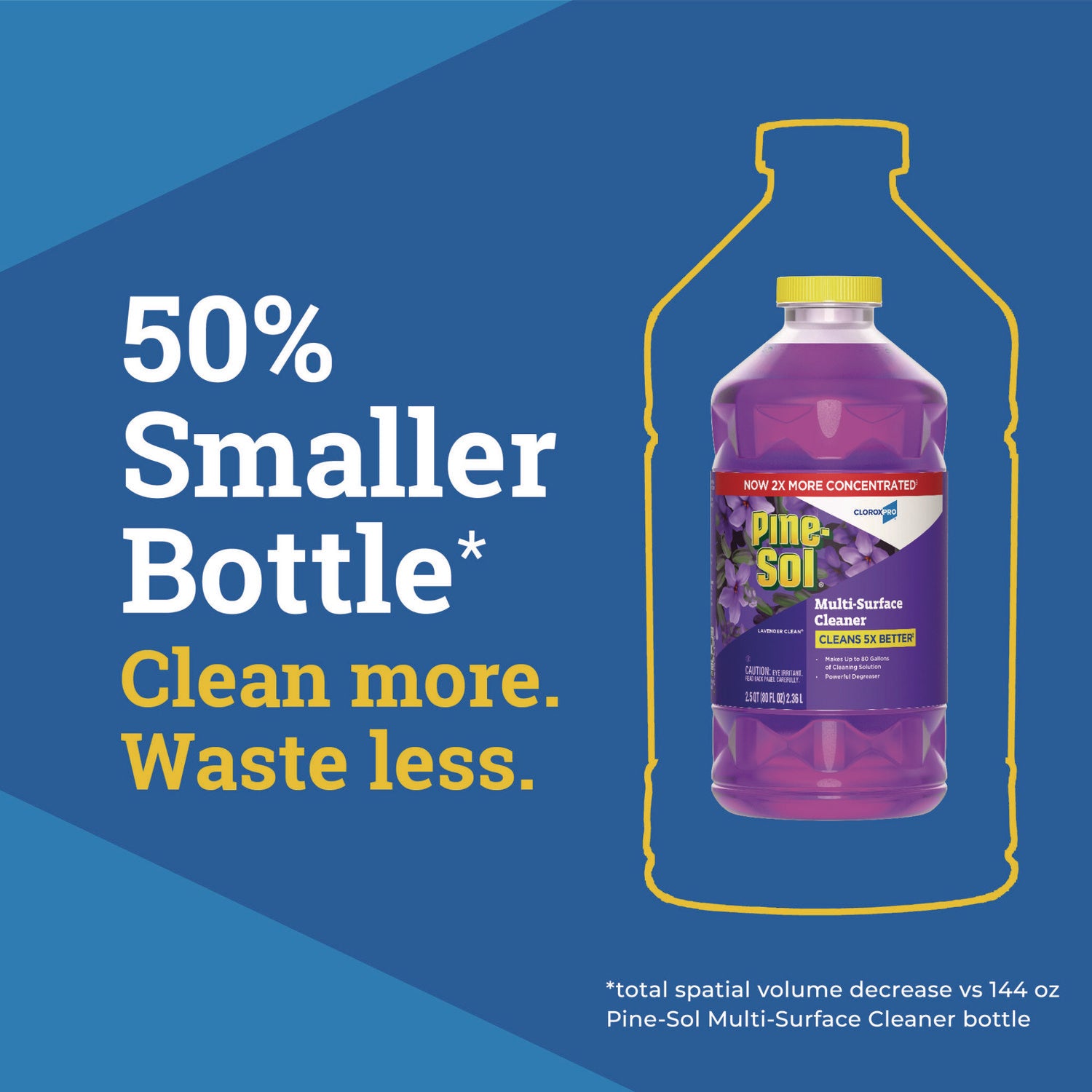 - One bottle reduces plastic waste by 30% compared to previous Pine-Sol 144 ounce bottle.