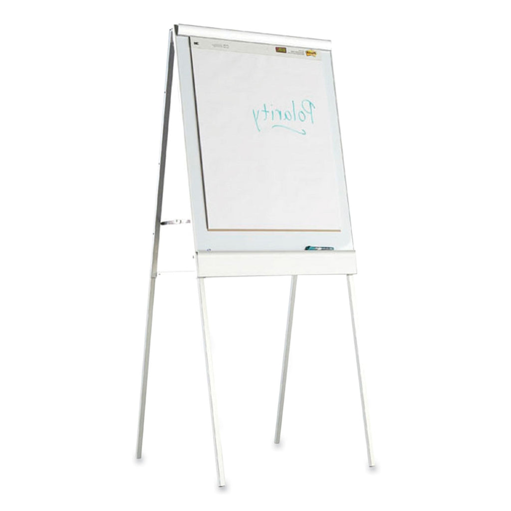 A-frame easel features four height settings and a broad-stance profile to ensure proper visibility with excellent freestanding stability. The portable Polarity™ Magnetic Steel Whiteboard features a superior coated-steel dry erase surface that resists staining and ghosting for easy cleaning. Top-mounted aluminum flipchart holder accommodates your favorite easel pad.
