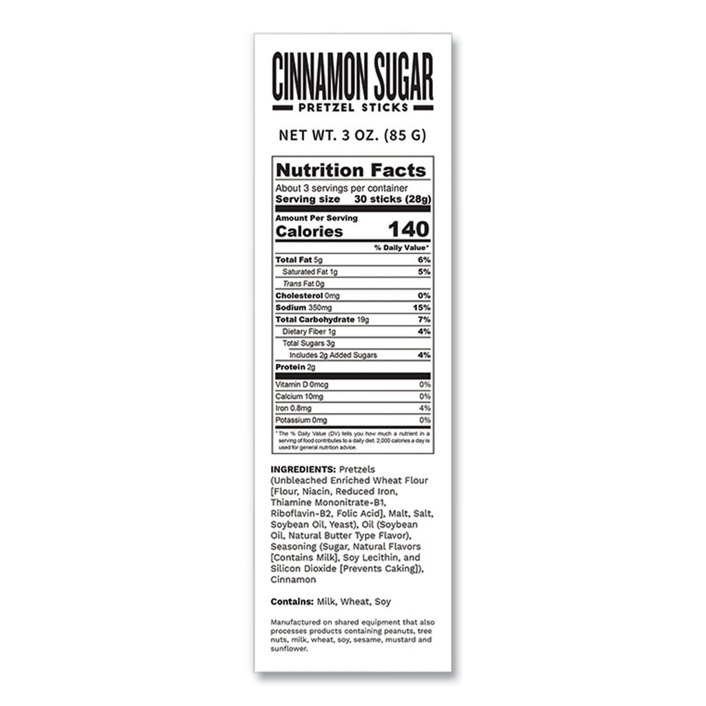 - Hand-seasoned pretzel sticks layered in cinnamon sugar.