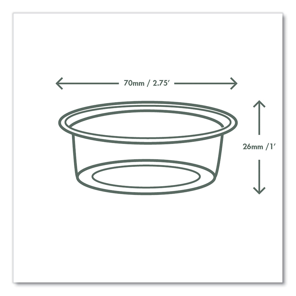Round portion pot. One flat lid fits all sizes, for a great seal and easy stacking. For cold toppings or sauces, mini snack or protein pots, or sampling. Made from PLA, a renewable material made from plants. Clear for visibility. Award-winning quality by Vegware™, made from plants. Commercially compostable where accepted.