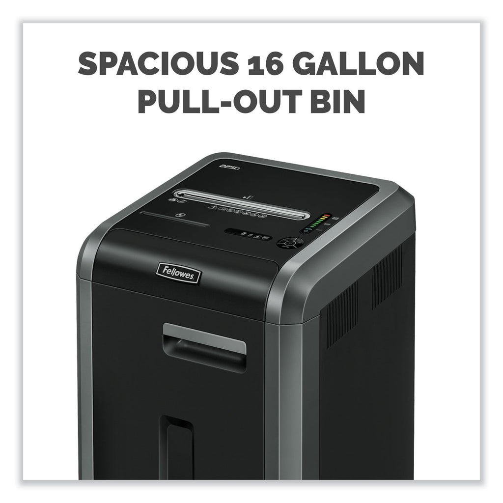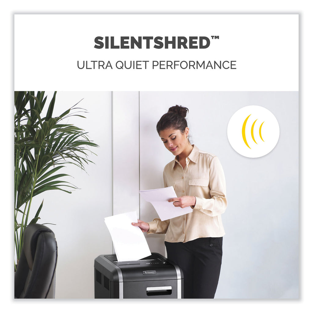 Provides high performance commercial shredding. The 100% Jam Proof System eliminates paper jams and powers through tough jobs. SilentShred™ offers ultra-quiet performance for shared workspaces. SafeSense® Technology stops shredding when hands touch the paper opening. Energy Savings System provides optimal energy efficiency 100% of the time—in use and out of use. Shreds 20 sheets per pass into 5/32” x 1 1/2” cross-cut particles (Security Level P-4) and also shreds staples, paper clips, plastic credit cards, CDs/DVDs and junk mail. 16-gallon bin and the continuous duty motor offers non-stop shredding for 3-5 users.