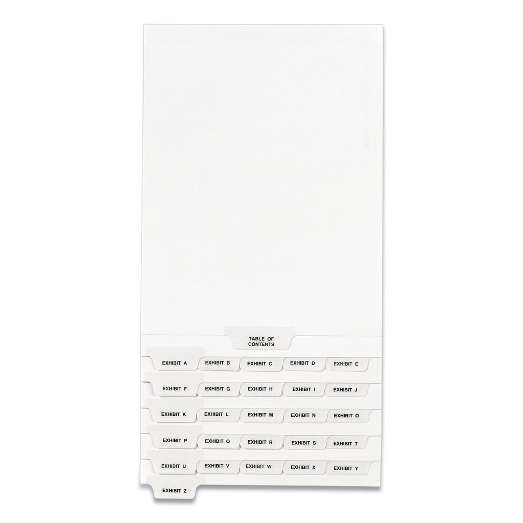 Organize index briefs, legal exhibits, mortgage documentation files and more. White paper stock gives files a professional appearance. Rip-Proof™ reinforced tabs are printed on both sides. Binding edge is unpunched so indexes can fit practically any binding system. Avery Style is Helvetica bold type style and Allstate Style is Helvetica regular type style.