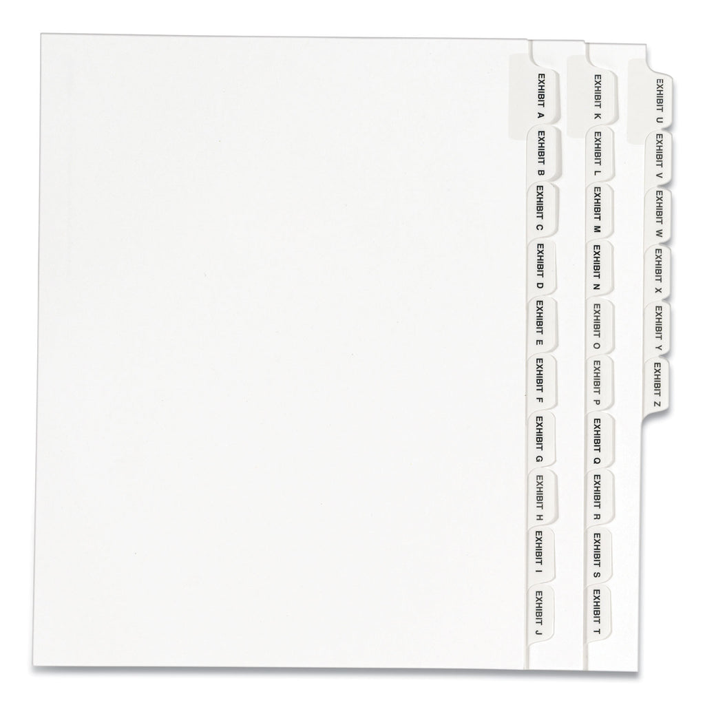 Organize index briefs, legal exhibits, mortgage documentation files and more. White paper stock gives files a professional appearance. Rip-Proof™ reinforced tabs are printed on both sides. Binding edge is unpunched so indexes can fit practically any binding system. Avery Style is Helvetica bold type style and Allstate Style is Helvetica regular type style.