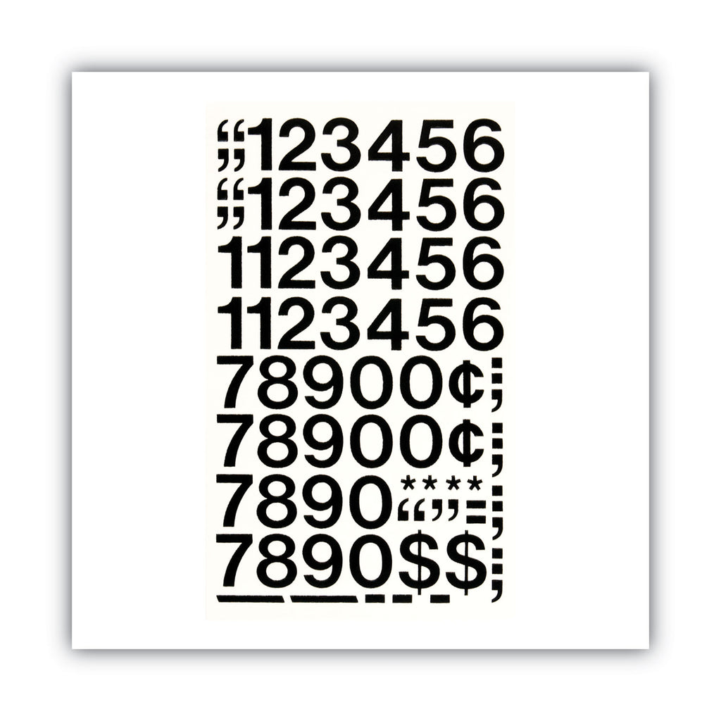 For signs, posters and equipment identification. Self adhesive vinyl will stick to most clean, dry surfaces. Can be used indoors or outdoors. Punctuation and monetary symbols included. Permanent adhesive.