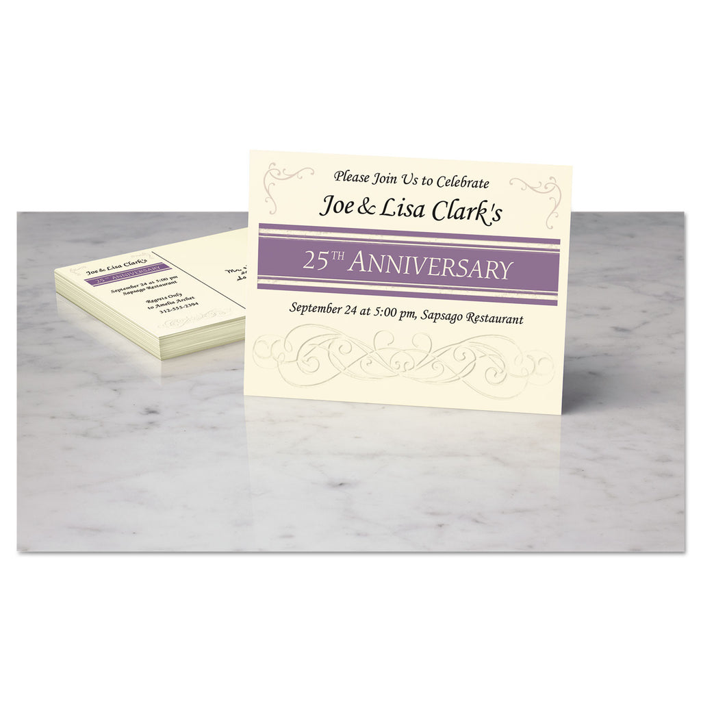 Create professional-looking invitations, announcements, reminders, seasonal offers and more. Sturdy bright white cardstock is either matte-coated for vivid graphics and sharp text or has a premium quality glossy finish ideal for photos. Ultra-fine perforations let you separate cards cleanly and easily. Meets U.S. postal regulations for postcards. Easy to customize with free templates and designs using Avery Design & Print Online. 8.5" x 11" sheets.