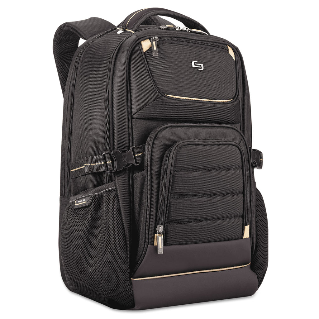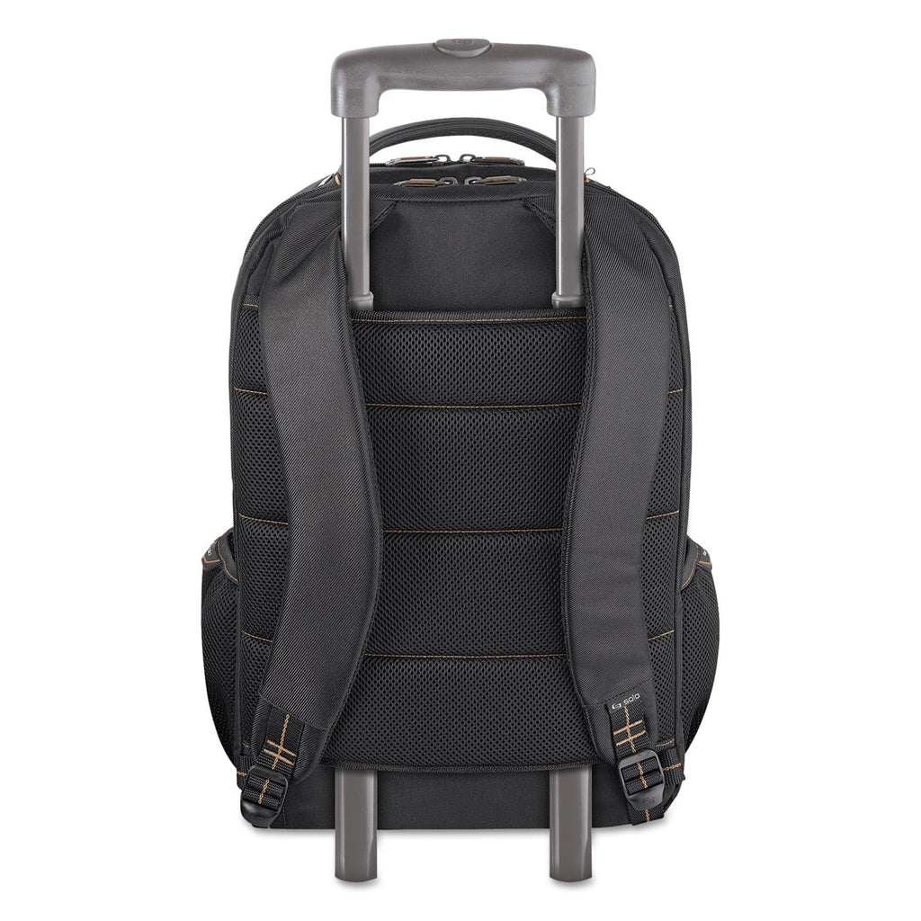 Fully padded 17.3" laptop compartment. Interior iPad®/tablet pocket. Back panel slides over luggage handle.