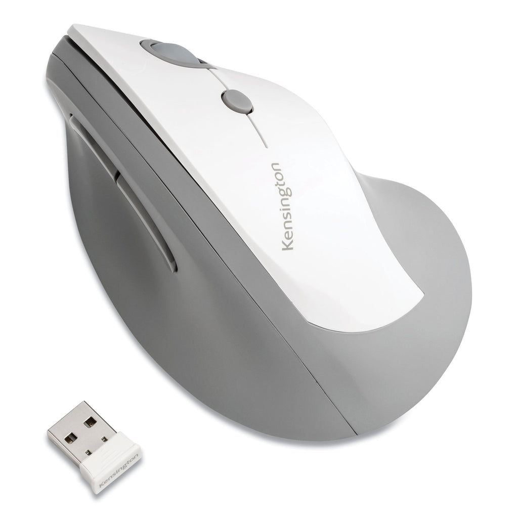 Contoured, natural (46.7°) slope keeps the wrist in a neutral handshake position, eliminating soft tissue compression. Extended lip for the little finger provides complete support for smoother, larger muscle group movement. Fully-featured mouse with scroll wheel, left, right, forward, back, and DPI (800/1000/1200/1600) buttons. Simply plug in the nano receiver for plug and play wireless connectivity up to 65.61 ft. Low battery indicator let's you know when it's time to change the battery, so you're never caught off guard. One AA battery lasts up to a year. Nano receiver conveniently stores inside mouse when not in use.