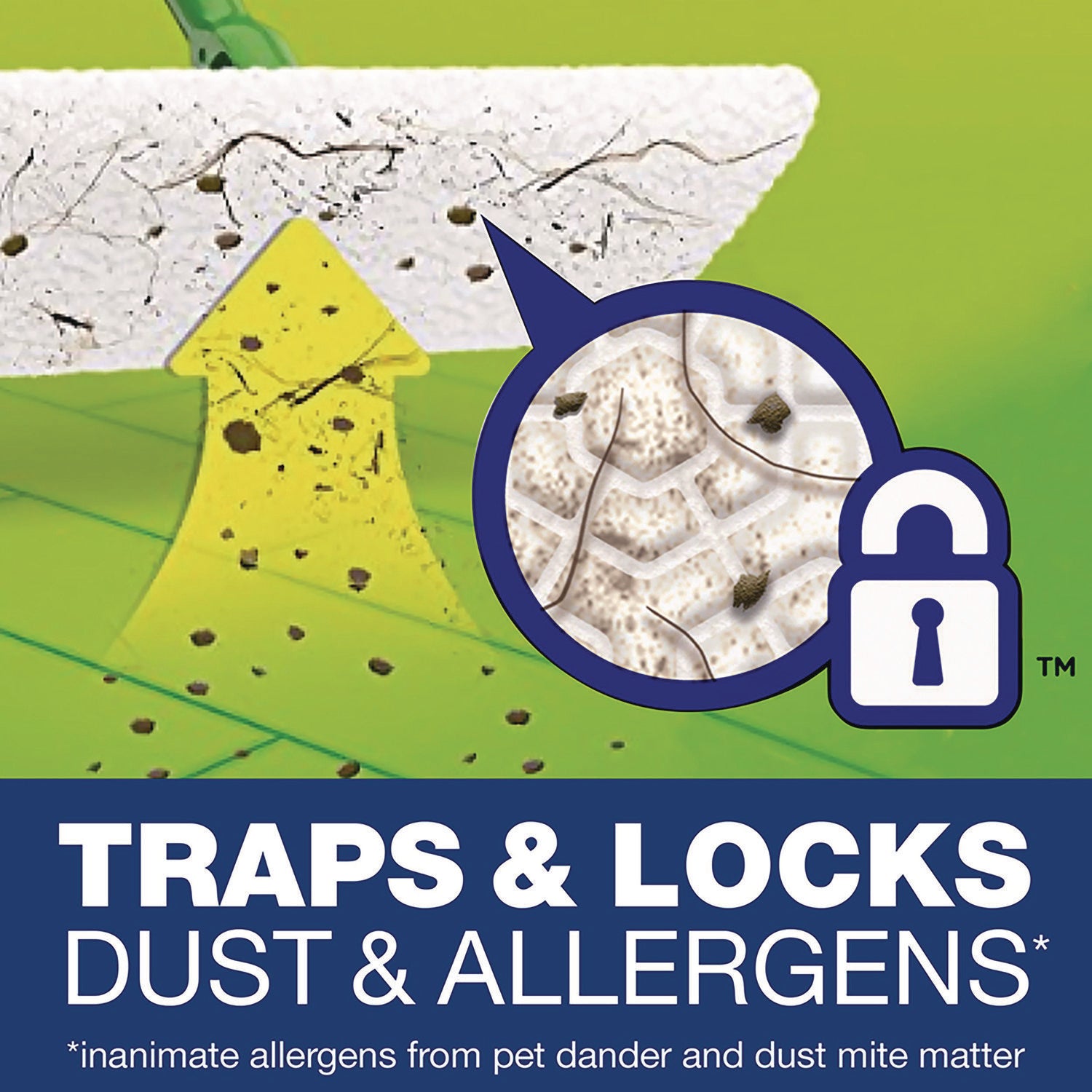 Pads trap dust, dirt and hair on electronics and other hard surfaces with their patented 3-D fiber web. Instead of just moving dust and dirt around, eliminate it with these large, soft dry cloths. Dust is removed, not sent airborne so you will save time because dusting won't be needed so often. Combine these dusting pads with the Swiffer Max Sweeper (sold separately) to cover large areas quickly. Wiping a hard surface with these cloths creates an electrostatic charge that attracts dust, dirt, common allergens and hair to the cloth. Fits 17" wide Swiffer Sweeper.